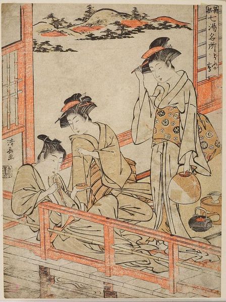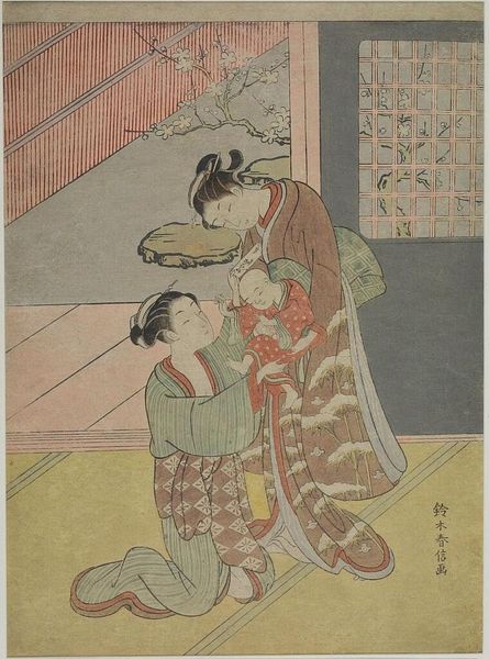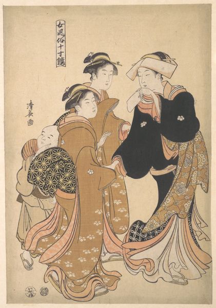 Kitagawa Utamaro created this woodblock print titled, Dressing a Boy on the Occasion of His First Letting His Hair Grow. During Utamaro's time, Japanese society was highly structured, with rigid social hierarchies. The artist's prints often focused on the lives of ordinary people, particularly women. Here we see a tender moment as women dress a young boy, marking an important transition in his life. The occasion is a Shinto ritual celebrated on November 15th that marks three important passages for children aged three, five and seven. Utamaro’s work offers a window into the cultural rituals around gender and childhood. The act of dressing the boy can be seen as a performance of gender, where clothing and adornment play a crucial role in shaping identity. Instead of traditional representations Utamaro develops alternative narratives which capture personal moments. This print reflects societal values, and gives insight to the emotional and personal experience of transitioning into a new stage of life.