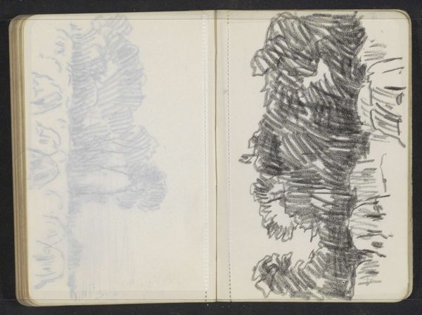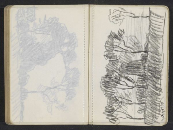 Alexander Shilling made this landscape with trees in a sketchbook, with what looks like a graphite pencil. I love how Shilling used the double page spread, and activated the whole surface. The tree on the left is almost a complete abstraction, a kind of scribble that suggests the essence of a tree rather than its detail. On the right, we see a more skeletal depiction. What I notice are the marks, the lines that build up the forms. The density of the shading on the left creates a soft, almost hazy effect, while the sparser lines on the right have a more immediate, raw feel. The way he's captured the texture of the bark, using these hatching techniques, reminds me a little of some of Cezanne's drawings. But it also feels very personal, this quiet observation. This piece feels like a conversation between the artist and the natural world, filtered through the hand and the eye. It's like a visual diary entry, a fleeting moment captured in graphite.