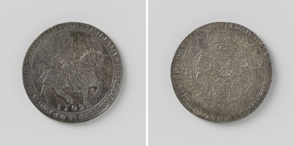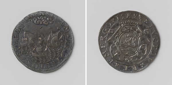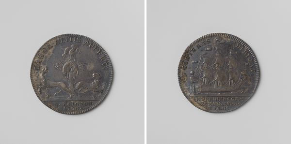 Editor: So, this is the "Proefslag van de munt van Antwerpen," a coin designed by Jacques Roettiers II in 1744. It's fascinating, almost like a tiny, detailed sculpture! What strikes me is the contrast between the regal emblem on one side and the depiction of, well, what looks like a coin mint on the other. What do you make of this piece, especially considering its historical context? Curator: This coin offers a fascinating glimpse into the socio-political landscape of 18th-century Antwerp. Remember that money wasn't just about value; it was a powerful tool of propaganda and representation. The coat of arms asserts authority, of course. But the depiction of the mint itself speaks volumes. It emphasizes the infrastructure, the *institution* of money. Who exactly was Roettiers trying to impress, or reassure, through the circulation of this design? Editor: So, it's less about the artistry and more about the message being broadcast? Curator: The artistry is certainly important! Roettiers clearly possessed skill. But ask yourself: How would the average person encountering this coin interpret these images? What understanding of power, trade, and governance would they internalize? Also, let's think about the museum’s role now. By displaying this, what narrative are *we* reinforcing? Editor: That’s a great point. It almost forces you to think about the museum itself as a shaper of public opinion, not just a neutral space. Curator: Precisely. A coin like this embodies that complexity. The politics of imagery were, and still are, at play. Editor: This definitely gives me a lot to consider. It's amazing how a simple coin can open up such complex questions about power and representation. Curator: Exactly! Hopefully, this sheds light on how studying art history through a historical lens enriches our understanding.