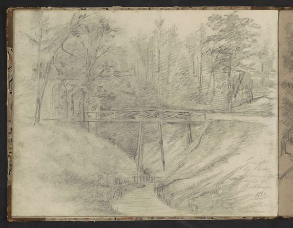 Editor: This is "Laan in het Amerongse Bos" made around 1868-1869 by Johannes Tavenraat. It's a pencil drawing on paper. It has a wonderfully light and airy feel. What can you tell me about it? Curator: Consider the ready availability of pencils and paper versus paints and canvas at this time. It lowers the barrier to entry for artists and even hobbyists, doesn't it? Observe the casual quality, a 'quick sketch' feel. Think about what it says about the relationship between artistic creation and leisure, the burgeoning middle class finding new ways to interact with and represent their environment. Editor: So you’re saying the materials used shape the very kind of art produced? It wouldn’t exist if paints had been readily available instead? Curator: Not necessarily *wouldn’t* exist, but its very character – the impressionistic rendering, the 'captured moment' – that stems from its practicality, wouldn’t you agree? Also, examine the role of paper, manufactured for wider consumption: what impact might the Industrial Revolution's mechanization have on an artist's practice, who once needed to grind their pigments, prepare supports? This newfound immediacy encourages a different mode of seeing, a democratic embrace of landscape as a subject for anyone to observe and record. Editor: That makes so much sense! It changes how I look at landscapes. Curator: And hopefully encourages you to think about art not as existing in a vacuum, but as reflecting very concrete production realities. Editor: I will certainly do that. Thank you for shining a new light on the context of this drawing. Curator: My pleasure! Always consider the material conditions, for they dictate, inspire, and constrain in equal measure.