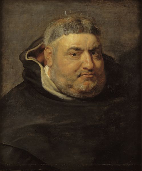 Curator: Here we have Philips Koninck's portrait of Joost van den Vondel, completed in 1674. What strikes you initially? Editor: The austere presentation – it feels intentionally plain. The darkness almost overwhelms the figure. Curator: Indeed, the tonal contrast is stark, almost chiaroscuro. Koninck uses the light to sculpt Vondel’s face, drawing our attention to his thoughtful expression. The gaze is direct, yet weary, hinting at inner contemplation. The work shows his hand—can you speak to its surface qualities and production? Editor: Look at the subtle impasto around his face. The materiality speaks of a particular production; oil paint was carefully layered, demonstrating skillful craftsmanship. Was this a commission? What was Koninck paid for this representation? What kind of social status allowed for the production and ownership of paintings like this? Curator: The exact details of its commission are unclear, but given Vondel's stature as a celebrated poet, it’s likely a work of considerable cultural importance, potentially destined for a municipal building or a patron’s private collection. But what of Koninck's compositional strategy? Notice how the severity of the dark robes frames and enhances the impact of Vondel’s face. The stark whiteness of the collar creates a visual tension, leading the eye upwards. Editor: While I agree, my thoughts return to its use in reinforcing class distinctions. Think of the pigment acquisition – surely derived from complex trading networks. The very act of rendering this image speaks to an infrastructure of artistic production deeply intertwined with material exploitation. What are our responsibilities in this system? Curator: That's certainly a lens through which we can understand it. For me, it reveals an almost theatrical interplay between light and shadow. Koninck successfully captures the gravity and intellect of a significant cultural figure through calculated formal arrangements and refined technical proficiency. It emphasizes a visual experience that captures and holds your gaze as he holds yours. Editor: Seeing through all layers makes the viewing so enriching. Thinking of its construction in paint and materials helps me look further and closer.