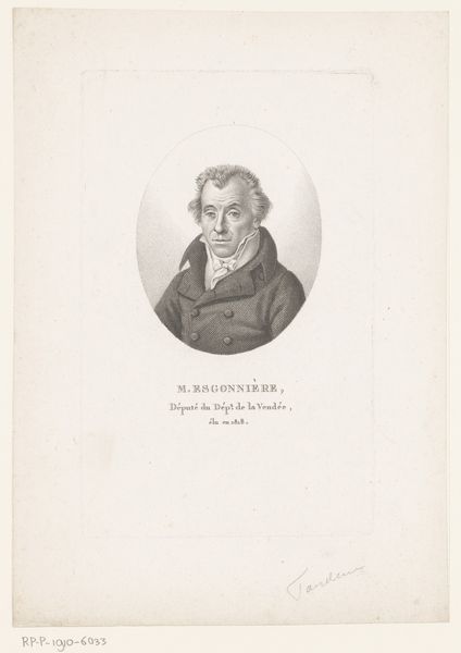 Curator: What a stern countenance! The high contrast between the subject and soft, smoky background lends the figure an air of seriousness and importance. Editor: Indeed. This is a print entitled "Portret van Luigi Valentino Brugnatelli," dating somewhere between 1783 and 1840. The work, created by Luigi Rados, employs graphite and engraving. We should examine the historical context of its production more closely. Curator: Let us consider first the formal elements. Note the exquisite tonal gradations Rados achieves, especially within the swirling fog surrounding Brugnatelli's head. This delicate treatment focuses attention squarely on the face, its volumes so skillfully rendered. Editor: And what does that face tell us? Beyond artistic skill, we see a representation of power and intellect. Consider who Brugnatelli was - a professor of chemistry at the University of Pavia, a significant figure of his time. How does this portrait function as a historical document that presents him and perhaps reinforces a social hierarchy? Curator: Of course, the representation served a purpose, but look how Rados uses light and shadow to define Brugnatelli's features, creating a palpable sense of presence and depth. Observe, too, the texture of the coat, achieved through masterful engraving. The texture adds visual weight, solidifying the sitter's image. Editor: This emphasis on “presence and depth,” to what end does that contribute to an interpretation of the print? And while technical skill is clearly present, we can't ignore the role portraiture played in immortalizing and celebrating men of science during that period, usually excluding those who might contribute to his accomplishments yet who exist on the margins. Where is their visual representation? Curator: That's a compelling point about representation. But the formal choices – the composition, the rendering of light – those are essential components contributing to the artwork’s aesthetic force, its impact upon the viewer regardless of subject matter or societal context. Editor: Perhaps the formal execution adds value and visual cues to our cultural understanding of power as presented by society, in this case how an educated man is depicted. This piece sparks essential considerations about who holds positions of authority and how they’re remembered. Curator: Well, it's given me new perspectives to consider when observing a work, thank you. Editor: As with any visual text from the past, seeing this portrait requires acknowledging its place within history and present-day relevance.