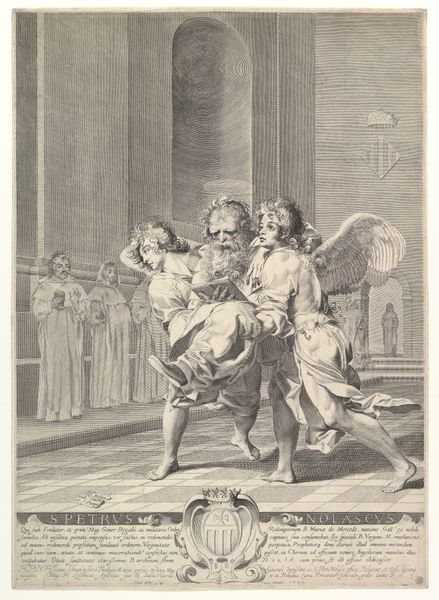 Curator: Here we have "En ung mand og to kvinder spiller musik," or "L'Aimable Accord," an engraving created sometime between 1750 and 1770. Elisabeth Claire Tardieu’s delicate lines bring to life a musical gathering in what seems a private chamber. Editor: It feels terribly posed, doesn't it? Everyone caught in this perfect little tableau. The very picture of harmony, though somehow the stillness makes me question what is left unsaid, under the music. Curator: It speaks to a Rococo ideal, certainly. The staging is deliberate, with the instruments and score underscoring music as a civilizing force, part of cultivated leisure. It hints at intimacy while preserving formality. Editor: Intimacy observed, curated for posterity, perhaps. Note how they avoid meeting the eye. Are they in harmony or just performing harmony? This almost eerie effect is achieved with engraving rather than color or brushstroke! Incredible how it creates an intimate atmosphere and cool detachment at once! Curator: Indeed, printmaking's rise enabled images like these to circulate widely, popularizing new notions of refined taste. The repetition of classical motifs—the draped curtain, fluted columns, sculpted figure in the background—reinforces connections to an imagined golden age. The iconography invites viewers to emulate its visual rhetoric. Editor: Yes, an aspiration cleverly masked as mere amusement. They perform music; we perform our fascination. Maybe it’s not just their emotions being obscured but ours, too, as we become part of its game. Even the name, "L'Aimable Accord," it is more of an order to perceive agreement than an honest declaration, a statement of an accomplished objective instead of simply harmony. It almost mocks us for observing it! Curator: Interesting. I see the encoding of social aspiration but appreciate your unease with its perfection. Art always resonates beyond intended meaning, doesn’t it? Editor: Right. Thank you for providing that interesting perspective. Let us tune back in, with a new ear for dissonance, wherever we go.