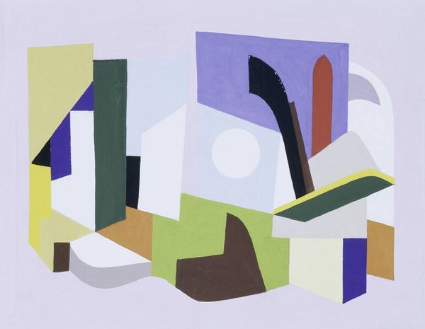 Curator: I’m immediately struck by the pastel coolness of this watercolor drawing, so different from the usual vibrancy I associate with modernist explorations of landscape. Editor: Exactly. Today, we're looking at Gösta Adrian-Nilsson’s "Komposition med gren". Although undated, its embrace of geometric abstraction clearly positions it within early modernist experiments in redefining space and form. Let's delve into that intersection of technique and material. Curator: It's the imagery that fascinates me. What's a landscape without a clearly defined horizon, or rendered in such a fragmented style? Those scattered leaves... are they symbols of nature in decay, a memento mori embedded in the composition? Editor: I'd argue those fragmented components aren’t about decay, but an active reimagining of landscape, viewed through the lens of Cubism. The watercolor medium itself is critical. Its fluid, translucent qualities allow for the layering of shapes. Consider how Adrian-Nilsson coaxes a sense of depth while maintaining flatness—pushing against the traditional constraints of both landscape and drawing. Curator: Yet, the tree's motif, however stylized, remains potent. For me it suggests a connection to something larger, maybe even something more existential. A tree is symbolic. It is a nexus connecting earth with the divine. The drawing captures this liminality using this particular rendering in the landscape genre, as a metaphor for a larger psychic experience. Editor: And those symbols don't exist in a vacuum. By understanding his creative process and his relationship to the means of production, we uncover connections to broader issues about craft, artistic labor, and the shifting boundaries of the avant-garde. It looks less like the psychic realm and more like modernist workshops as seen and explored by a draughtsman and visual storyteller. Curator: Maybe that inherent duality is the drawing's strength: its ability to ground very earthy concepts of craft in the transcendental realm of symbolism. It has the symbolic charge of growth as well as transformation. It is this contrast which renders it beautiful. Editor: Indeed, this interaction really underlines how analyzing material practices allows one to reveal how such drawing both participates in and shapes cultural attitudes. What is so great about the work on paper in front of us today is that its radical geometry reorders conventional representations, but allows each person their personal point of view.
