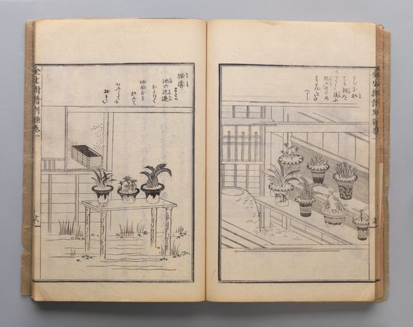 Editor: Here we have a page from Hasegawa Settei's "Encyclopedia of Musical Theater Performances," created in 1889. It's an ink and color on paper drawing, showcasing scenes of what seems to be everyday life in Japan at the time. What strikes me is the intimate peek into these private spaces. How do you interpret the scenes depicted in this artwork? Curator: These genre scenes offer a fascinating glimpse into late 19th-century Japanese society, particularly through the lens of performance and leisure. Note how carefully the artist captures the spatial arrangements, dividing the scenes into separate planes on a single page. Consider how class and gender are represented, and how these visual signifiers reflect or challenge the societal norms of the Meiji era. Editor: So, you’re suggesting it's not just a straightforward depiction, but also a commentary on the social structures of the time? Curator: Precisely! Who gets to participate in these artistic practices? How is access to art mediated by societal forces? Thinking about the ukiyo-e tradition and its evolution in the Meiji period allows us to understand this piece as a site where artistic heritage intersects with modernizing social and political landscapes. Editor: That makes me rethink the apparent "ordinariness" of the scenes. The choice to focus on musical theatre performances now seems like a deliberate act of cultural preservation, or perhaps even resistance, during a time of rapid westernization. Curator: Exactly. It raises important questions about the artist's intention. Is this work a form of cultural celebration, a nostalgic record, or a subtle critique of changing values? And who was this journal intended for? Editor: Looking at it that way makes me see beyond just pretty scenes and appreciate the layers of meaning embedded within. Curator: Absolutely. By considering the historical context, and societal dynamics at play, we can glean the deeper meaning that resonates beyond the aesthetic appeal of this drawing. Editor: I'll definitely look at art differently now, considering it in relation to the broader social narratives it engages with.