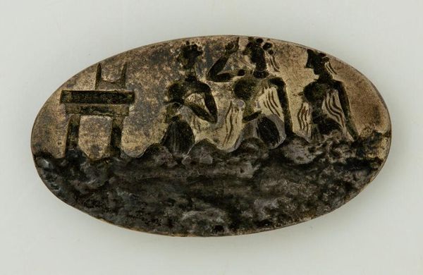 Editor: This is a fascinating little piece – a scarab, dated to around 1500 BC, titled "Scarab with a Lion Hunting Horned Animals." It looks like it’s made of ivory or a similar material. The detail is incredible for something so old. What's striking me is how dynamic it is; despite its small size, there’s so much implied movement. What catches your eye about it? Curator: I'm immediately drawn to the labor involved in crafting such an intricate design on such a small scale, especially considering the available tools at the time. Consider the socioeconomic implications – who commissioned this? Was the artist a craftsman, an enslaved worker? The raw material too, like ivory, signifies consumption. Where did it originate, and how was it traded? It’s more than just aesthetic, it's about production. Editor: So, you’re less focused on the hunting scene itself, and more on the creation and distribution of the object? Curator: Precisely! While the imagery undoubtedly held symbolic importance for its original owner, I’m compelled by questions regarding its creation. It makes one consider its potential use beyond its symbolic weight, perhaps it was used as a seal. Were these scarabs produced en masse or individually crafted, and how did this shape artistic traditions during that time? Editor: That makes a lot of sense. I hadn’t thought about the logistical side of ancient art production. It makes me wonder about the life and conditions of the artist themselves, a dimension you don’t often consider. Curator: And think about the consumption involved in using an organic material like ivory, which degrades over time. This necessitates constant demand and procurement for a durable, personal artifact. Editor: Thinking about the ivory trade routes puts the art object in a completely different frame of reference! I never looked at ancient art through this kind of lense. Curator: Hopefully you'll consider materiality going forward when trying to grasp a full understanding.