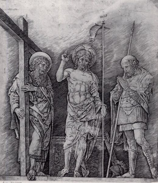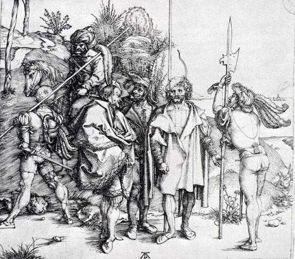 James Tissot created this watercolor, entitled Shem, Ham and Japheth, during a period of renewed interest in biblical themes in the late 19th century. This work offers a window into the complex intersection of religious narrative, cultural identity, and artistic interpretation of the time. As the sons of Noah, Shem, Ham, and Japheth are central figures in the biblical account of humanity's repopulation after the great flood. This image, however, isn't just a retelling of a familiar story, it reflects the social and cultural context of Tissot’s era. Look at how each figure is individualized through costume and pose, yet grouped together. What does it mean to depict these figures with such particularity, while also emphasizing their shared ancestry? How might this relate to contemporary ideas about race, lineage, and the construction of identity? As you consider these questions, allow yourself to connect with the emotional depth and cultural resonance embedded within this artwork.