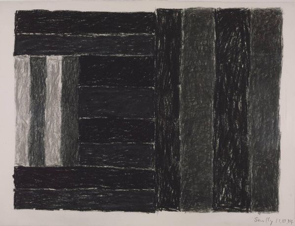 Editor: Franz Kline’s "Herald," painted in 1954, is such a striking monochrome piece, created using bold, impasto strokes. The stark black and white immediately evokes a sense of powerful simplicity. What socio-political undercurrents do you perceive within its abstract form? Curator: This piece speaks to me about the anxieties of the Cold War era. Look at how the bold, black strokes dominate the canvas. How does that aggressive gesture resonate with the socio-political tensions brewing at the time, in your view? The work almost becomes a stage, setting the premise for a broader commentary. Editor: It’s interesting that you see a correlation between form and the external political sphere! To me, the title “Herald” suggests almost an announcement of sorts, but I can't place what that might be related to. Curator: Consider this, what were artists “heralding” or perhaps critiquing at mid-century? Abstract Expressionism itself was, in a way, heralding a new artistic and cultural freedom in the West, a counterpoint to the more rigid social realism often promoted in Soviet states. Does that cultural positioning add another layer to your read of it? Editor: Definitely. Thinking about it that way, it is easy to perceive Abstract Expressionism's value as a means for cultural expression and political subversion. The artwork stands as an echo chamber for the zeitgeist of its time! Curator: Exactly! Kline’s work serves as a historical marker and a cultural touchstone, igniting necessary conversations and hopefully inciting tangible societal changes. What are your parting thoughts? Editor: I had never considered art as a tangible method of resistance or freedom. Looking through this socio-political lens changed my understanding completely! Curator: Mine as well! The work seems increasingly radical the more we deconstruct its contextual narratives!