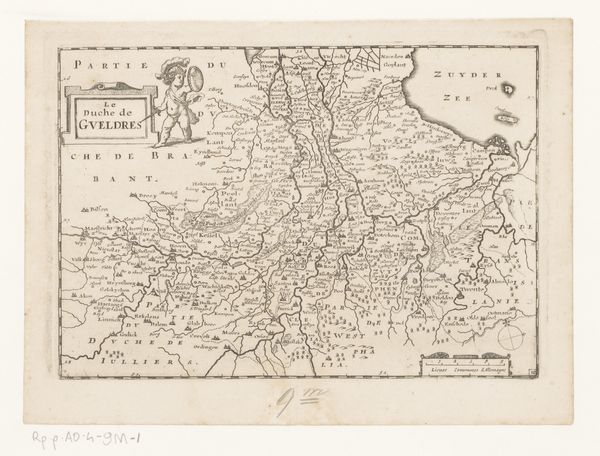 This map of the County of Zutphen was etched in ink by an anonymous artist. The process of etching involves coating a metal plate with a waxy, acid-resistant material, drawing into the material to expose the metal, and then bathing the plate in acid, which bites away at the exposed lines. The fine lines and details of this map indicate the etcher’s precision and control. Cartography was essential to European trade, military campaigns, and administration, as power expanded across the continent and into the world. The level of detail in the etching suggests the importance of accurate geographical representation for planning and decision-making. Yet there’s an artistry here, too. The image’s allegorical flourishes, such as the cherubic figure at the lower right, soften the severity of its purpose. It reminds us that even technical drawings are mediated by human hands, choices, and skill. The production of maps like this one depended on the collaboration between surveyors, draughtsmen, and etchers, each contributing their expertise to the final result. It demonstrates how artistry and utility are often intertwined, reflecting the values and priorities of the society that produced them.