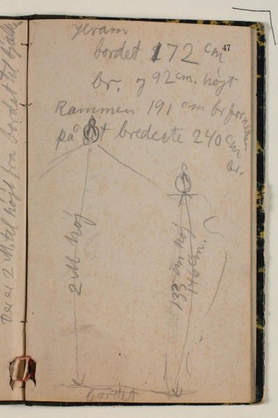 George Hendrik Breitner made this annotation page with graphite on paper. It's not a typical artwork, but it shows Breitner's working process. Looking at the paper, you can see the graphite has left smudges, telling us he likely worked quickly. The handwriting is casual, not precise. These material qualities give us insight into his mindset. He jotted down notes and measurements, maybe for future paintings. The artist was part of the late 19th century art world, when artists increasingly focused on capturing fleeting moments of modern life. The social context here is the artist's studio, where he was experimenting and developing ideas. Ultimately, by looking closely at the materials and the process, we can see how this simple annotation page captures Breitner's creative energy. It challenges the idea of what "art" can be, reminding us that the act of making is often as important as the final product.