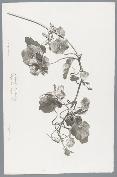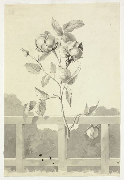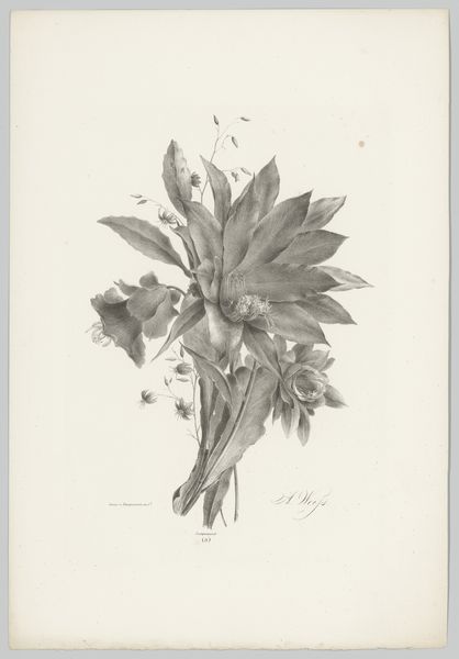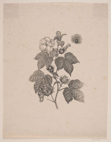 Curator: Standing before us is a piece titled "Morning Glories" by Antoine Pierre Mongin. It's currently undated, but crafted with such delicate mastery using watercolor, ink, chalk, and graphite on paper. Editor: My first thought? It’s ethereally quiet. The muted tones almost whisper; it's like capturing the fleeting beauty of a dream. Curator: It’s interesting you say that. Mongin’s choice of monochrome adds a certain timelessness, doesn't it? We often consider botanical studies for their scientific precision, yet here, the artistic interpretation takes precedence. It reminds me a bit of early photographic processes – the way light and shadow shape our perception. Editor: Exactly! It feels almost like a faded photograph, preserving a moment. The detail is exquisite. Notice the subtle gradations in the leaves, and the gentle unfolding of the petals—a fragile dance captured with such sensitive hand. Curator: Indeed, his delicate linework creates a mesmerizing interplay between texture and form, capturing the unique curvature and ephemeral beauty of morning glories with stunning accuracy. Botanical art, especially that produced in France during this time, often served both scientific and decorative purposes, intended for the walls of private homes as well as the pages of scholarly texts. Editor: Thinking about the “decorative” aspect makes me consider its effect. This piece makes you want to pause, contemplate, almost reach out. There's an intimate, emotional connection established with this unassuming flower. Is it purely because of the plant, or the artistic touch that teases such an introspective state of mind? Curator: Perhaps the two can’t be separated. What is appealing is his ability to create an image rooted in the tradition of observation, while conveying such sensitivity and feeling. The overall composition contributes significantly to that mood, leading us gently through light and shade as it celebrates these modest floral figures. Editor: Precisely, and I think Mongin captured it splendidly! So, after experiencing its subtleties, I'm leaving with a renewed sense of appreciation for the quiet moments of observation—thank you for enlightening us. Curator: It's been my pleasure to help uncover its layers.