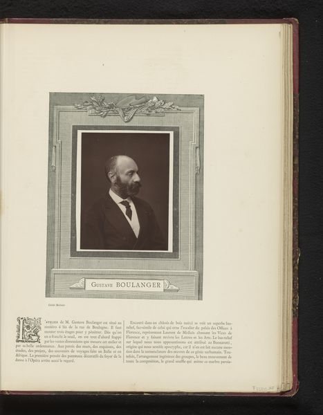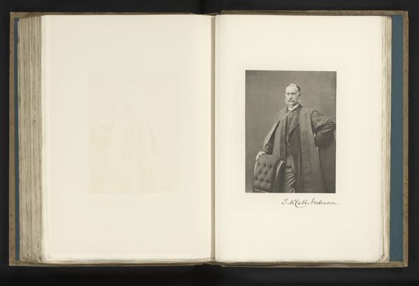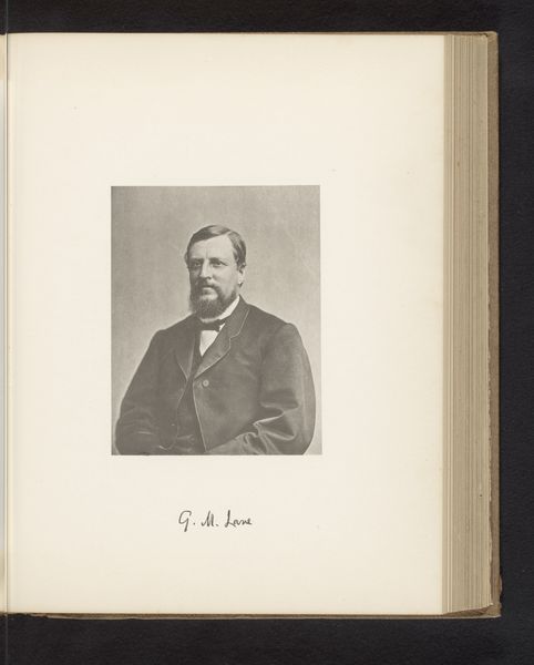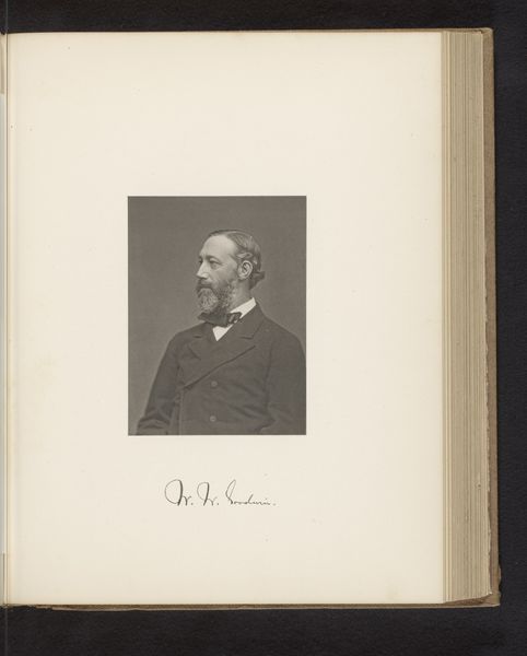 This is an undated portrait of Henry Jacob Bigelow by an anonymous artist. The photograph is modest in scale, a small rectangle set within the larger page of a book. Its formal composition balances the texture of the book’s pages and the crisp monochrome of the image. The subject's gaze, directed slightly off-center, creates a dynamic tension with the static nature of portraiture. The high contrast between the dark suit and the light background not only emphasizes Bigelow's presence but also plays with the semiotic codes of visibility and power inherent in portraiture. The artist's choice to remain anonymous destabilizes the traditional emphasis on the artist's identity, shifting focus to the subject and the act of representation itself. This compositional decision prompts us to question the fixed meanings associated with portraiture, suggesting that the essence of an image may reside as much in its formal structure as in its subject or creator.