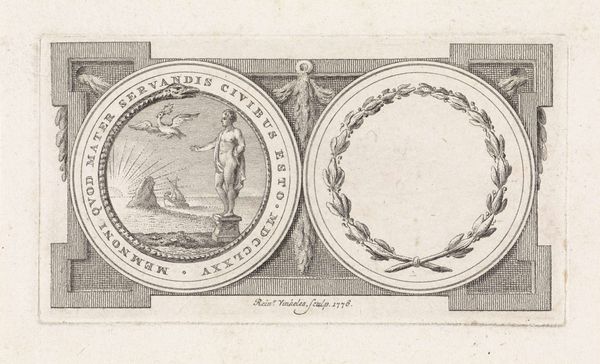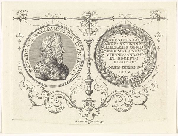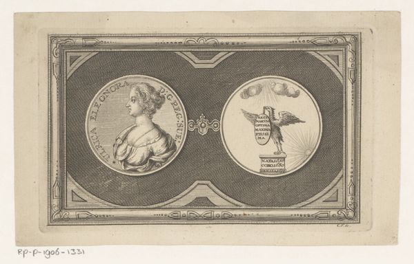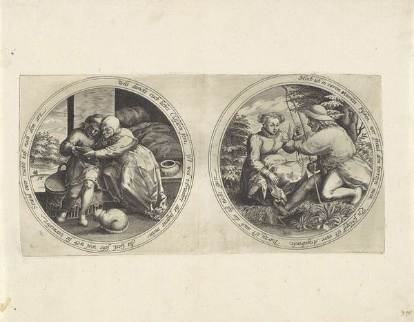 Editor: This intriguing graphic artwork, "Fantasy Portrait of a Woman with a Flute, and Musical Instruments," created by Hendrick Goltzius between 1598 and 1602, currently resides in the Rijksmuseum. It is a rather unusual double portrait within circular frames. One depicts a woman, and the other features a jumble of musical instruments. What strikes me is the social commentary implied in this contrast of portraiture and still life – how should we interpret them? Curator: Indeed, a curious piece. We must consider the public role of imagery in Goltzius's time. Notice how the "portrait" doesn't necessarily commemorate an individual, but rather a type. The second image displays the trappings of "good cheer" so to speak, thus, both emphasize the social pleasures associated with music, but in dramatically different modes of representations. What does the composition suggest to you in terms of the social function of this graphic art? Editor: I see that these roundels almost look like medals, meant to circulate through society. Would this indicate the pursuit of artistic talent through a female image could have been a virtue for aspiring musicians or their patrons? Curator: Precisely. Graphic art like this facilitated the spread of ideals, especially amongst the upwardly mobile merchant classes in the Dutch Republic. And while it’s a “fantasy portrait,” Goltzius still positions music-making within a certain social structure, a framework approved by civic morality, and open to anyone willing to participate. This raises questions about the role of patronage, and also hints towards the developing culture of virtuosity. Do you notice anything about how class is communicated through imagery? Editor: It's all in the trappings of culture, in this case music. Thinking about the intended audience makes it a window onto that society’s values, doesn't it? Thanks! Curator: Exactly! Considering how museums, galleries, and society all shape our perspective allows a deeper understanding of art and its influence.