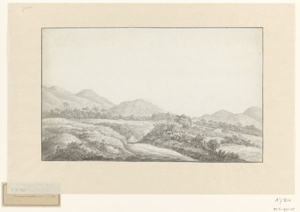Editor: Here we have "Mountain Landscape with a Man Smoking a Pipe in the Foreground by the Water," a print, likely an engraving, by Auguste Numans, created sometime between 1833 and 1880. It's a peaceful scene. How do you read this piece? Curator: As a materialist, I'm interested in the process of creating this print. Consider the labor involved in engraving – the skill required, the tools used, and the time it took to produce. Editor: It must have been painstaking work! What do you think it tells us? Curator: The very act of engraving elevates a landscape – a common subject accessible to all – through a meticulous process. It's no longer just a view, it becomes a commodity, available to those who could afford prints. Notice the detail in the mountains. Think about the materials used – the metal plate, the inks, the paper. Each choice reflects the social and economic conditions of the time. The Romantic style itself suggests a specific cultural perspective, glorifying nature but also controlling its representation through art production. What strikes you most about the landscape presented? Editor: I think it's the figure of the man smoking his pipe. He seems so…at ease. Curator: Precisely. That moment of leisure becomes an artifact captured and reproduced through industrialized means. It also shows how artistic production relies on collaboration - from the engraver, the publisher to, eventually, the consumer. How is this form of artistic consumption linked to the production of landscape? Editor: Wow, I hadn't considered all the layers involved. It makes you appreciate the work on a totally different level. I’ll be sure to investigate labor during the Romantic period. Curator: Indeed. Analyzing the materiality reveals the complex interaction between art, labor, and consumption.