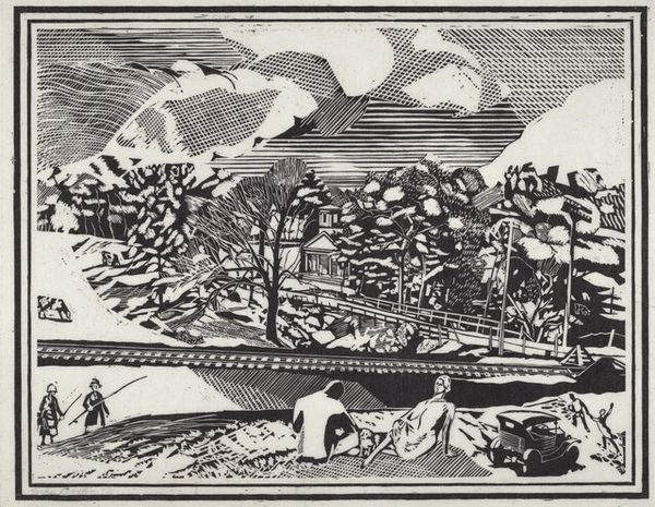 J.J. Lankes created this wood engraving, titled "Neglected," in 1937. The composition, dominated by stark black and white contrasts, evokes a somber mood. The texture is defined by densely packed lines, creating a palpable sense of depth and shadow. Lankes masterfully uses these formal elements to destabilize our expectations of rural idyll. The barn, laden with snow, and the solitary horse, suggest abandonment and decay. The stark, almost brutal, lines of the wood engraving emphasize the harshness of the scene, challenging romanticized views of pastoral life. The high contrast and graphic quality also subtly echo the social realism prevalent during the Depression era, where artists used simplified forms to convey potent social messages. Notice how the artist’s choice of medium is not merely aesthetic but structurally integral to the artwork’s message. It serves as a potent commentary on the neglect and hardship of rural America.