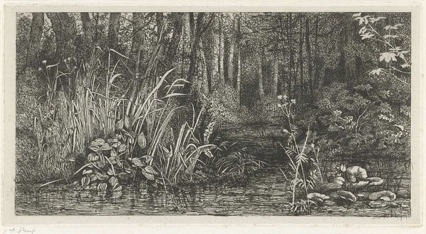 Editor: Here we have Gy Szabo Bela’s “Juin (June)” from 1963, a print made with etching and woodcut techniques. I find the contrast between light and shadow so striking. It almost feels like stepping into a hidden world. What draws your eye when you look at it? Curator: It does whisper secrets, doesn’t it? The landscape almost vibrates with life rendered in pure black and white. Look at how the artist uses geometric forms, a clever trick. That contrasts sharply with the subject matter of landscape. It reminds me how nature always organizes itself – even if secretly. I always wonder what other secrets we miss simply because we aren't paying close enough attention. What do you suppose Szabo was drawn to when he selected the month of June? Editor: Perhaps the peak of the natural world? It is often associated with abundance. Why do you describe Szabo's technique as "tricky?" Curator: A good eye! Because here Szabo invites us into his deeply personal understanding of a landscape. See how the lines aren't purely representational? Instead, they are also raw emotion, using shape and form to elicit feelings. It's like nature filtered through Szabo's mind – a memory or a feeling turned tangible. What emotions does that invoke in you? Editor: Definitely peacefulness, perhaps even a sense of wonder. Thank you for unlocking new ways of seeing the art. Curator: My pleasure. These moments in the art should encourage everyone to find what connects with them the most. It also challenges everyone to use new frameworks and discover entirely new interpretations.