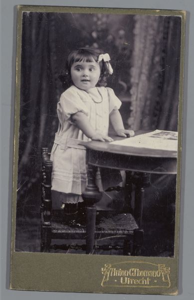 Editor: This is Martin Schweig's "Untitled (little girl)," a black and white photograph. I’m struck by the texture of her dress and bonnet – it makes me wonder about their materiality. What do you see in this piece, considering its materials and production? Curator: Well, let's consider the photographic process. It's a manufactured image, not a unique handmade object, yet it documents material culture: the dress, the bonnet. Think about who made these garments, under what conditions, and who could afford such finery for a child's portrait. Editor: So, the photo isn’t just of a girl; it's about the social context of clothing production and consumption. Curator: Precisely! This image captures a moment embedded in the material realities of its time. We can examine the labor behind the lace as much as the girl herself.