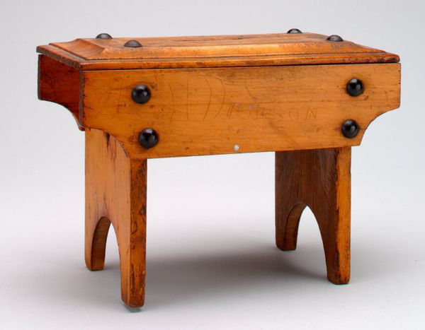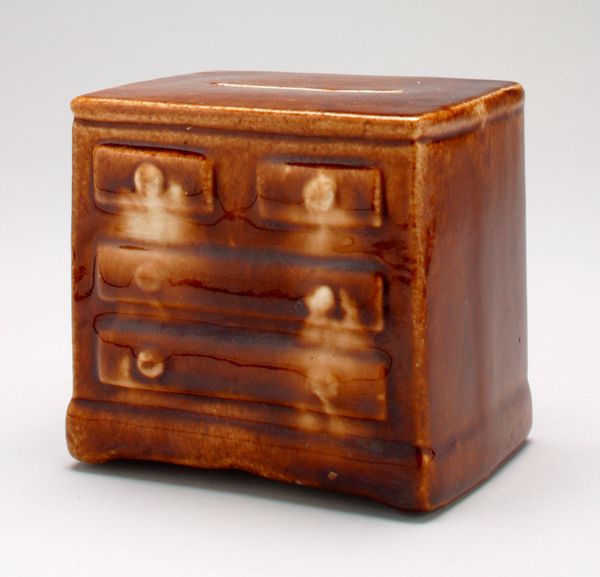 This miniature chest of drawers, a still bank, presents us with symbols of domesticity and security. The chest of drawers itself, a common household item, becomes a repository not just for clothes but also for savings, hinting at the emerging middle-class values of thrift and domestic comfort. Consider the parallel between this humble piece and the grand coffers of Renaissance Europe, both serving as guardians of wealth. Yet, while the coffer spoke of dynastic power, this chest whispers of personal industry and familial stability. The dark knobs punctuating each drawer invoke a psychoanalytic perspective, symbolizing control and management of one's inner world, where financial anxieties and aspirations reside. The idea of containment and accumulation is timeless. This "still bank" resonates with our modern desire for safety and control over our economic lives. While the materials and function of the "still bank" have adapted over time, the underlying desire for security remains a constant thread in the fabric of human experience.