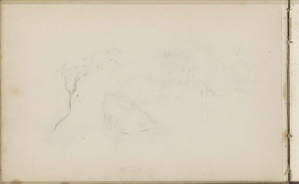 Curator: Anton Mauve created this drawing, known as "Ruiters," sometime between 1848 and 1888. You can see it on display here at the Rijksmuseum. It seems he primarily worked in pencil for this piece. What's your initial feeling looking at this? Editor: Hmm. "Melancholy" springs to mind. It's so sparse, isn't it? Just the barest whisper of trees and fields. The almost ghostly quality gives it a feeling of something remembered, like a fading photograph. Curator: Yes, the simplicity is quite striking. The use of pencil—and possibly frottage if you look very closely—creates a soft, almost hazy effect. Notice how he captures the essence of a landscape with so few lines. The implied movement of the horses gives this sense of being fleeting, momentary. Could Mauve’s choice of medium point toward an embrace of modernity, where new ways of representing form allowed for more direct engagement with fleeting sensation? Editor: Absolutely. There is also a connection here to a Japanese aesthetic. It feels like he’s capturing the ephemeral—those small, poignant moments that vanish as soon as you register them. Are there elements in this work that tap into something shared and deeper, some collective memory or symbol of vulnerability perhaps? Curator: Possibly. Trees are classic symbols of life, growth, and family ties. Here, with the barren branches, they could also represent resilience through winter and times of struggle. The riders on horses, though indistinct, symbolize power, or movement towards perhaps. I imagine that his audience, even at the time, would have had to navigate between tradition and change; this imagery strikes a certain resonance, a moment in which to feel empathy with Mauve’s sensibility. Editor: Right, there's something about the sketchiness of the drawing that conveys uncertainty. Not knowing what the next stage in their journey looks like. So in these figures, these horses that can take the viewer beyond, but they're held in this kind of very light landscape – a dream state? I suppose one must find a new path for oneself, but that's very unsettling and freeing all at once. Curator: It truly seems like he captured an experience on the threshold, teetering between eras. It gives the viewer pause to consider it, I think. Editor: Well, I will definitely think differently when I see a tree or drawing from now on! Thanks.