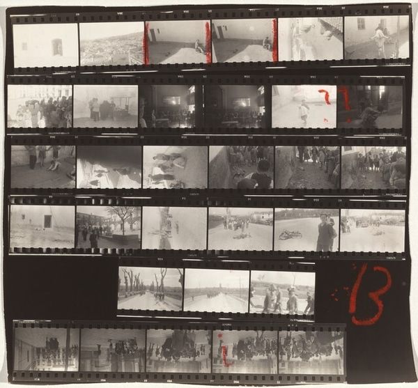 This is Robert Frank’s “Wales 48,” a contact sheet of black and white photographs. The sequencing and arrangement are key here. Frank treats the act of photography as a fluid process. Looking at the surface, you see the raw materiality of the photographic process. The emulsion feels almost tactile, you can see every detail, every scratch, every blemish. The high contrast adds to this rawness, lending the images a stark, documentary feel. It is not clear if the red markings are from the photographer or a later editor. They add a layer of removal and ambiguity to the images. Take the frame with the figures standing in the landscape; the composition is loose, a bit haphazard, but this is where the magic lies. Think of Cartier-Bresson and his "decisive moment," but here, Frank's moments feel more provisional, like sketches or notations. It is the provisional, documentary feel of these images that makes this piece sing. I think of Helen van Meene’s portraits which share a similar provisional and accidental composition. It is these images that allow for ambiguity and multiple interpretations.