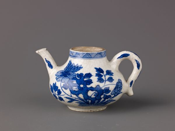 This is a lid of hard-baked earthenware made by Boch, decorated with delicate blue floral motifs. The stylized floral patterns, painted in a distinctive cobalt blue, immediately evoke the rich tradition of Delftware, connecting us to a lineage of craftsmanship that spans centuries. Consider how floral motifs, like these, have served as symbols of renewal and beauty across cultures. From ancient Egyptian lotus blossoms to the springtime flowers Botticelli painted, flora conveys a timeless message of hope and vitality. But it’s not merely replication. Notice the subtle shift in style, a move away from the purely ornamental towards a more simplified, almost naive rendering. This evolution reflects the changing sensibilities of the age, an embrace of naturalism tempered by the burgeoning industrial aesthetic. The collective memory of idealized nature is filtered through a modern lens, reminding us that even in simple domestic objects, the echoes of history resonate.