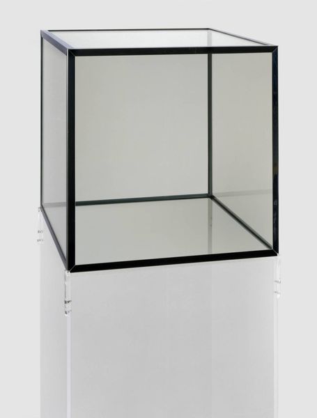 Editor: Here we have Larry Bell's "Untitled" sculpture from 1969, made of glass. It's striking how the geometric form interacts with light and space; it almost disappears depending on the angle. What stands out to you when you look at this work? Curator: Well, considering the socio-political context of 1969, this piece, while seemingly abstract, really speaks to a sense of dematerialization and questioning of established norms. What does it mean to create a sculpture that is, in essence, about absence, about the subtle play of light rather than a solid mass? Think about the Civil Rights Movement, anti-war protests—these were all about challenging visibility and power structures. Editor: So, you see its minimalist aesthetic as a reflection of the social upheavals of the time? Curator: Precisely! Minimalism, in its reduction to essentials, can be interpreted as a rejection of the excesses and established hierarchies of the art world, and perhaps of society at large. Who gets to occupy space, and how is that space defined? Bell’s work subtly challenges the idea of the art object itself. It’s questioning what truly occupies our attention. Does that resonate with you? Editor: Definitely! It makes me rethink the relationship between art and its environment. I originally saw it as just a cool sculpture. Curator: Exactly! It is so much more! Looking at art as being interwoven into socio-political circumstances enriches our comprehension. Editor: I never would have thought about it that way on my own. Thanks, that really broadened my perspective! Curator: It's been great to explore these perspectives. I hope it allows people to think deeper when they view works of art in a different light.