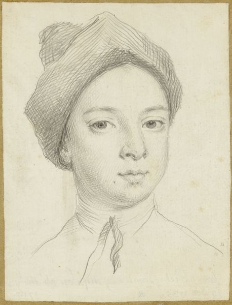 Curator: Isn't it arresting? A study in quiet composure. Editor: It certainly is. This piece is titled "Portrait Bust of Young Woman," by Francis Cotes. We don't have a specific date for it, but Cotes was active in the mid-18th century. It's rendered in chalk and charcoal on paper, and is currently housed here at the Art Institute. It looks academic. Curator: "Arresting" might be too dramatic. It's subtle. Look at the softness of the charcoal, almost like breath on the page. I feel her observing me as much as I am observing her, if you know what I mean. A mutual… consideration. Editor: Right, the softness definitely conveys a particular status. Charcoal, chalk—these were preparatory materials, means to an end for a more ‘finished’ work. Using them alone perhaps signifies a specific relationship to academic practice? Was it meant to showcase skill, technique? Curator: Skill, absolutely, but I see something more. Maybe the intimacy of the medium speaks to something private. She's young, yes, but her gaze… it hints at an understanding, an awareness that transcends her age. Is she romanticizing, or observing objectively? Editor: It’s hard to say, really. In the 18th century, portraiture served a social function. Displaying oneself to project status, power, connection. Do you think this could be considered a study for the subject of the picture, a preparation phase of an unfinished oil on canvas painting perhaps? Curator: I would love that; but if it’s all Cotes had to say, the mood created between the sitter and his hand would suggest something else, and more. If it exists only like this, it makes you consider where her image will ever land, what company this young woman will have for eternity! Editor: I see what you mean. It becomes less about her social standing and more about… potential? Or potential lost? Either way, Cotes certainly captures a compelling, if fleeting, moment. It allows us a glimpse of her interior life. Curator: Precisely. It’s a portrait that whispers rather than shouts. A lovely interlude on paper. Editor: Indeed, something profound in its quietude. Thank you.