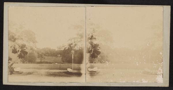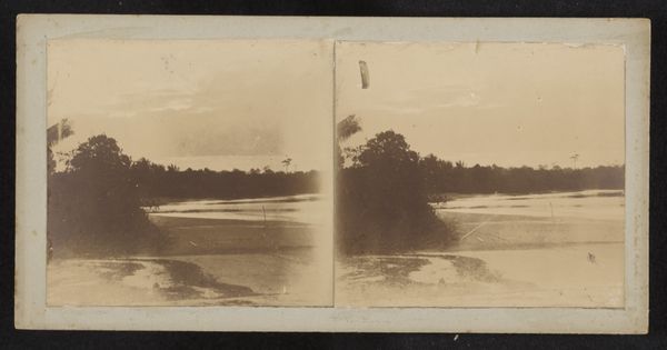Curator: Before us we have a photograph titled "Riviermonding in zee," which translates to "River Mouth at Sea." It's a gelatin silver print made sometime between 1900 and 1922 by Robert Julius Boers, and currently held in the Rijksmuseum. Editor: It’s interesting. Immediately I get this almost ghostly vibe, like a memory fading at the edges. The sepia tones really contribute, right? It’s a hazy, quiet scene. You can almost feel the humidity. Curator: Indeed. Consider the historical context. During the late 19th and early 20th centuries, landscape photography served not just as documentation but as a reflection of colonial power dynamics and romanticism, often shaping perceptions of distant lands. Editor: I see what you mean. The lack of figures gives it that "untouched paradise" feel – carefully constructed, I imagine. Like these kinds of images were definitely selling an idea of a place as much as showing it. Curator: Precisely. Early landscape photography, especially within a colonial context, often romanticized these territories, downplaying or erasing indigenous presences to promote a narrative of European discovery and control. Editor: But you know what strikes me is how…still it feels. Like a meditation almost. Which might be part of that colonial gaze, this passive, observant outsider. Does it almost flatten any sort of interaction or real presence from the photograph? Curator: That's a poignant reading. The tranquility in Boers' photograph, devoid of immediate human activity, may underscore that distance and reinforce the gaze of the colonizer onto a seemingly passive land. This contrasts greatly to how Indigenous populations lived. Editor: Absolutely. It’s weird, this calmness – it makes me question who gets to be still, who's afforded that luxury. Still, I appreciate its aesthetic, like a peaceful postcard from a troubling past. Curator: And viewing through a contemporary lens, one can appreciate how art like this can illuminate and inform discourses surrounding identity and politics within complex legacies. Editor: Yes. It gives us something to examine, something to learn and reflect upon, so the beauty is never just...easy.