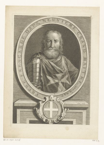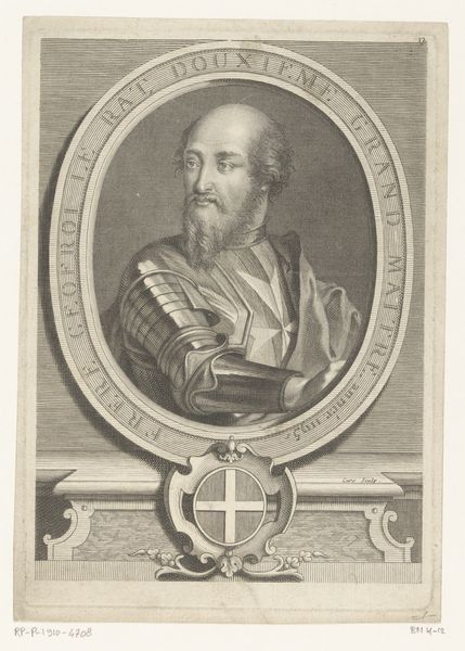 This portrait of Geoffrey de Donjon was created by Laurent Cars in France, most likely in the early 1700s. Cars worked as an engraver, reproducing paintings and creating portraits such as this one. This image is highly conventional. Geoffrey de Donjon is presented as a noble and respected figure. The Latin inscription that surrounds the central image emphasizes his status as a leader – a Grand Master, even. Below the portrait, we see a crest containing a cross, which alludes to his religious background. Religious institutions were still powerful forces in early modern Europe, so it is little surprise that Cars presents Geoffrey de Donjon with such reverence. To better understand this image, we might research the life and times of Geoffrey de Donjon, looking at his biography, as well as historical accounts of the religious order to which he belonged. This would help to better understand the social and institutional context for this portrait.