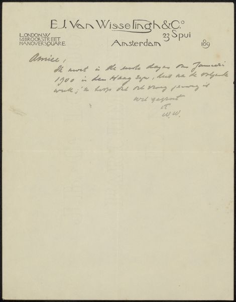 Emilius Wilhelmus Dehé wrote this letter to Jonkheer Hendrik Teding van Berkhout at an unknown date, using ink on paper. I love looking at handwriting, don't you? It's so personal. You can really see the hand, the pressure, the speed. And you can feel a little of the person behind it. Dehé’s script is so neat, with these elegant, looping forms. The letters seem to dance across the page. The red ink at the top is interesting too. A bold splash of colour in an otherwise monochrome composition. It almost looks like a correction or an afterthought, like a painter adding a final touch of red to their canvas. It reminds me of Cy Twombly, especially his use of handwritten text and vibrant colour. I’m always drawn to the way he layered his marks and gestures, leaving these fascinating palimpsests on the canvas. In the end, like all art, a letter is a form of communication that remains delightfully open to interpretation.