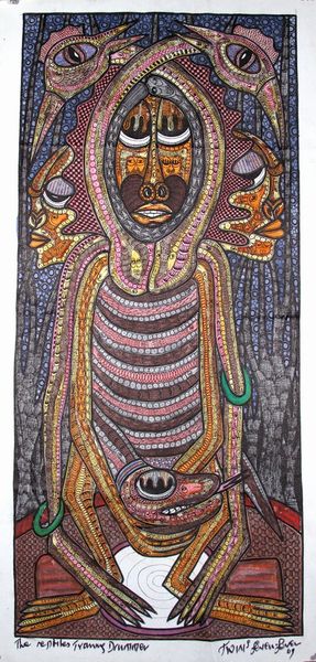 Editor: "Lil Emperor," a tempera painting by Timur Akhriev. What immediately grabs me is its intensity. It feels like staring into the heart of a meticulously crafted jewel box. The geometric and floral patterns vibrate with color, and the little teapot perched on top adds a touch of domestic whimsy to all that regal splendor. What strikes you when you look at this piece? Curator: Well, "jewel box" is a great way to describe it. It’s opulent but also contained, like a secret revealed only to those who look closely. It whispers of Asian art traditions, maybe textiles, ceremonial objects… Do you sense that? And that teapot, ever so slightly off-kilter? For me, it disrupts the seriousness just enough to let the light in, make it less about rigid power and more about playful reverence. It’s not about an actual emperor, perhaps, but more about the idea of royalty, presented in a domestic light. Editor: I see what you mean about the disruption. It definitely lightens the mood. It’s interesting you say "idea of royalty." Without the title, I’m not sure I’d immediately jump to that interpretation. I was just so captivated by the pure decoration of it all. Curator: Exactly! That decorative pull *is* the emperor! The artist pulls us in with the sheer beauty, the richness of pattern, and then leaves us to ponder what *makes* something royal: Is it power? Tradition? Or simply extraordinary beauty rendered with love? What do *you* think now? Editor: I hadn't considered it that way! It’s like Akhriev is using the familiar language of royalty to explore broader ideas about value and maybe even the way we construct meaning around objects. Food for thought for sure. Thanks! Curator: My pleasure. And, maybe, it’s an invitation to become emperors of our own little worlds. A prompt for us to consider, to create our own "royal" narrative with a little pinch of curiosity!