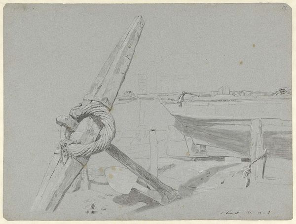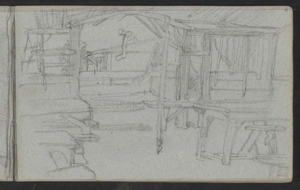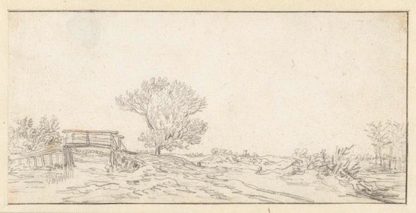 Editor: This is "A Ruin among Trees, with Figures," a sketch by Richard Wilson. It's quite small, but the ruins have an almost monumental feel. What do you make of its cultural context? Curator: Well, this sketch speaks to the 18th-century fascination with classical ruins, a movement heavily influenced by the Grand Tour. Aristocrats would travel to Italy and bring back imagery of these crumbling empires. Editor: So, it’s more than just an aesthetic choice? Curator: Absolutely. Wilson is participating in a cultural narrative, linking British identity to the perceived glory of the past, and the figures add a touch of melancholic contemplation. What do you think about that? Editor: It casts the scene in a new light, it makes the decay seem almost intentional. Curator: Precisely! It highlights the role art plays in shaping our understanding of history. Editor: I never considered it that way, thanks!