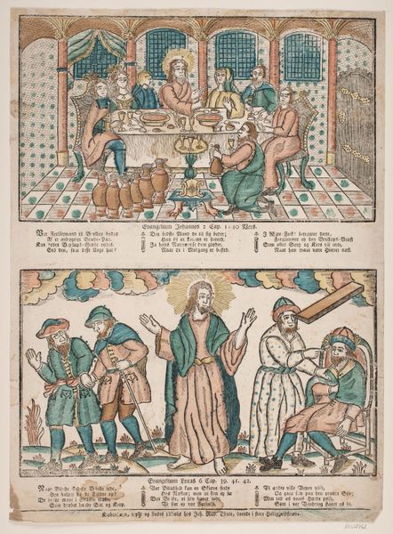 This is a woodcut print depicting ‘The Meal in the House of Zacchaeus; Zacchaeus in the Fig Tree’ by the Master of Antwerp. The story of Zacchaeus is a powerful narrative of transformation and acceptance. Zacchaeus, a chief tax collector, climbs a sycamore tree to see Jesus, transcending social barriers and the shame associated with his profession. This moment reflects themes of social justice and religious reform, central to the period's spiritual and political landscape. The print juxtaposes the communal meal, symbolizing inclusion and forgiveness, with Zacchaeus’s individual act of seeking connection. The choice to depict Zacchaeus in the tree might also speak to the historical context of social hierarchies and the act of subverting those structures. This image invites us to reflect on who gets a seat at the table, both literally and figuratively, and how societal outcasts can find redemption and belonging.