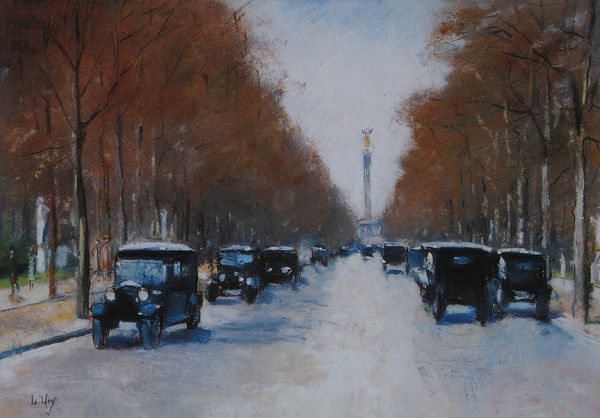 Lesser Ury made this painting, Unter den Linden, with oil paints and a very loose hand. It’s the kind of painting that knows it’s a painting, not a window! The way Ury smears and scumbles the paint makes the city feel so wet you can almost smell the rain rising from the pavement. Look at the way the reflections of the carriages seem to dissolve into the street, it’s like he’s capturing a memory more than a scene. I keep coming back to the horses, they’re not exact, but they feel right; they give the painting its energy and movement. You could say this piece shares a certain mood with some of Whistler’s nocturnes, that same interest in atmosphere and the poetry of urban life. It’s a reminder that painting doesn't have to be about precision to be true.