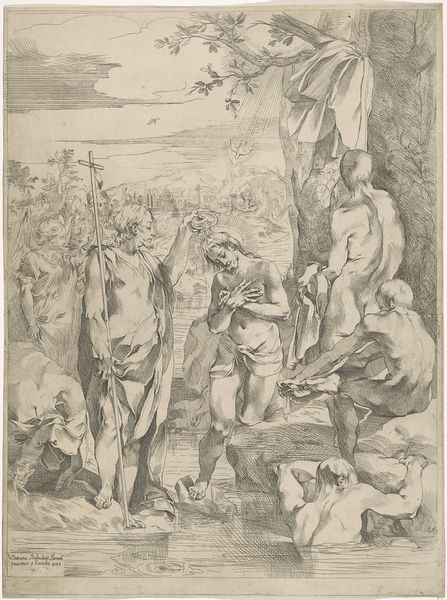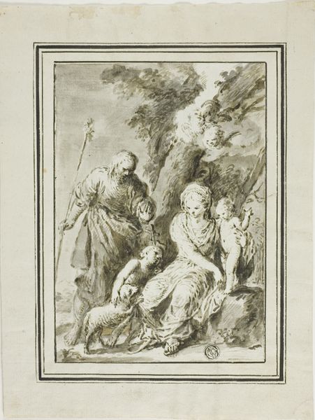 Lorenz Frølich created this pen and brown ink drawing, "Regnar Lodbrogs frieri," sometime in the 19th century. Frølich was deeply engaged in Norse mythology, reflecting the Romantic era's fascination with national identity and folklore. The artwork depicts two scenes from the legend of Ragnar Lodbrok, a Viking hero. On the left, we see Ragnar in a perilous encounter with a serpent, while on the right, he's depicted proposing to a woman. These scenes speak to the trials and tribulations faced by legendary heroes, reflecting societal values such as courage, and perseverance. Frølich’s artistic style is steeped in the aesthetic traditions of his time, yet he reimagines Norse mythology to reflect contemporary concerns. The drawing invites us to reflect on the relationship between the past and the present. It evokes a sense of wonder, transporting us to a world of gods, heroes, and mythical creatures.