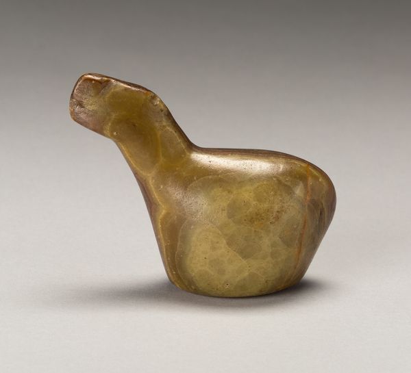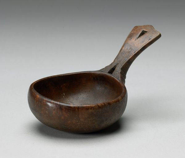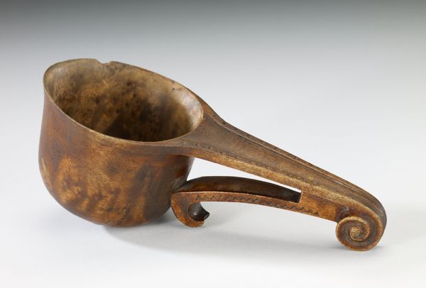 This is a wooden ladle created by John Young Bear, likely made during the first half of the 20th century. Young Bear was a Meskwaki artist, and this ladle reflects the rich tradition of craftsmanship within the Meskwaki community. Imagine the significance of everyday objects when considering identity and cultural expression. This ladle, more than a mere utensil, embodies a connection to heritage. The carved horse head adorning the handle might symbolize the animal's importance in Meskwaki life, representing strength, freedom, or a spiritual guide. Consider how such objects subvert dominant narratives, offering alternative stories of resilience and cultural continuity. This ladle speaks to the survival and adaptation of Indigenous traditions. It transforms a functional tool into a powerful emblem of cultural pride.