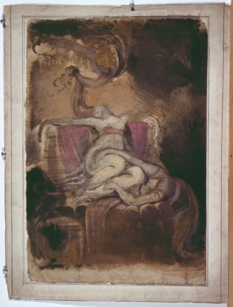 Valentin Khrushch created this work, titled "The Abduction of Europe," using watercolor and paper. These are traditional art materials, but in Khrushch's hands, they take on a decidedly unconventional character. Look at the thin washes of pigment, laid down quickly, almost impatiently. The paper support is clearly visible throughout, becoming an active element of the composition. There's no attempt to hide the process of painting; in fact, Khrushch seems to revel in it. The brushstrokes are loose, expressive, and even a bit messy. The subject matter is mythological, but the execution is anything but classical. Khrushch seems more interested in capturing a fleeting impression, a raw emotion. This immediacy aligns him with the social context of the nonconformist art scene in the Soviet Union, challenging official artistic doctrines. The work's power lies not in its illusionism, but in the honesty of its making. It's a reminder that art can be a direct, unfiltered expression of the human spirit.