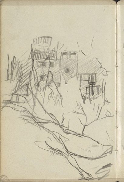This sketch, *Vrouw met hoed op een terras*, was made by Isaac Israels with graphite on paper. There’s something immediate and intimate about looking at a sketch like this – you're catching the artist in a moment of thought. Israels is feeling his way through the scene, hatching lines like he's knitting the image together. Look at the contrast between the dense scribbles that form the figure on the right and the more open, airy lines on the left. It's like he's mapping out the weight and volume of the woman with the hat against the lightness of the terrace. The quick, searching quality of the marks makes me think of Degas, who was also interested in capturing fleeting moments and the everyday lives of women. This piece feels less about a finished product and more about the process of seeing and recording, which is something I really value in art. It’s a reminder that art is an ongoing conversation, a way of thinking and feeling through the world.