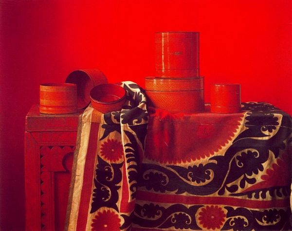 Curator: This is a detail from Jan van Eyck's "The Madonna of Canon van der Paele," painted around 1436. It currently resides in the Groeningemuseum in Bruges. Editor: Wow, the light almost feels real. There’s this stillness that vibrates – a moment captured so perfectly you feel like you could reach out and touch it. The details are astounding, like tiny worlds unto themselves. Curator: Van Eyck’s mastery with oil paint allowed him to capture an unprecedented level of detail and texture. Notice how the materials – the luxurious fabrics of the Madonna's robes, the metal of the Canon’s spectacles – all contribute to the painting's overall opulence, showcasing both wealth and the burgeoning merchant class that fueled artistic patronage at this time. The painting served a very specific purpose within the church – a public offering by Van der Paele of both his devotion and resources. Editor: Absolutely. It's more than just visual trickery. You can almost feel the weight of those robes, the coolness of the metal. It makes you think about the act of seeing, what’s captured with the hands. The light reflecting off each material evokes a unique feeling; It's as if the paint itself is transformed into something other worldly and deeply emotional. What kind of effort must have been involved? Curator: The detail indicates meticulous layering, suggesting an army of apprentices, various sources and processes of paint production, and specialized artisanal skills for different parts. What does a detail like that imply about who and what is made invisible in the final representation? Editor: Right, and that's a really vital question. Because these aren’t just holy figures but also real people, working, contributing, and paying—van Eyck included. It brings this spiritual, almost ethereal space crashing down to earth, reminds you that art is fundamentally built upon real people, time, skill, all that human energy. It's fascinating how it intertwines both the sacred and the very real dynamics of its creation. Curator: Precisely, it highlights how the act of making, the materials themselves, were deeply enmeshed in the social and economic structures of the time, subtly informing how the work was received and understood by its intended audience. Editor: Exactly! I keep coming back to the sheer amount of hand labor that went into every square inch. Something to sit with and think about long after walking away.