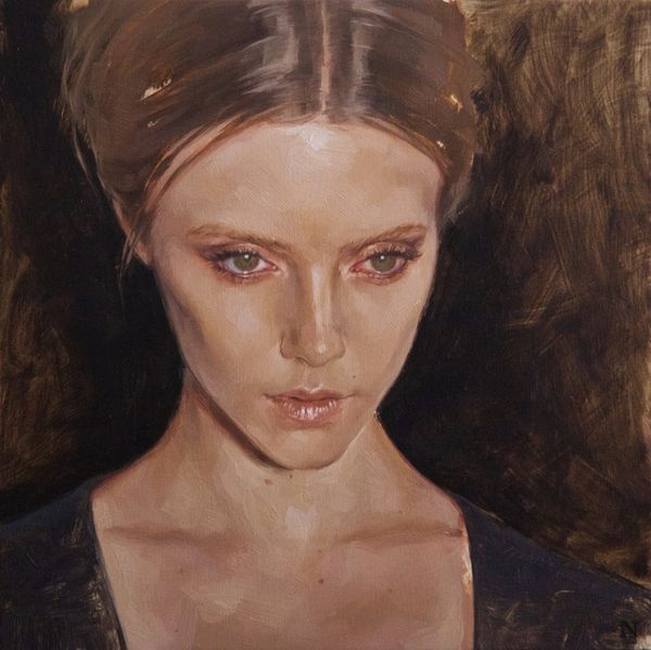 This portrait of Lydia, by Aaron Nagel, captures a subject in quiet contemplation. Her gaze drifts slightly to the side, a motif we see echoed throughout art history, from classical sculptures to Renaissance portraits. This averted gaze speaks volumes, suggesting introspection, thoughtfulness, or perhaps a hint of melancholy. It transcends mere representation, tapping into a collective memory of human emotion. Think of the many Madonnas, saints, and even mythological figures depicted with similar expressions. This isn't just about the direction of the eyes; it's about the psychological depth it conveys. Perhaps it's a way to represent the internal world, inviting us to ponder what thoughts lie beneath the surface. Such a gaze engages viewers on a deep, subconscious level, stirring something within us that goes beyond the visual. This gesture carries a weight that has evolved and resurfaced, taking on new meanings in different historical contexts.