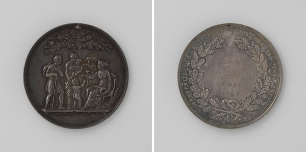 This is a small, anonymous, undated lead medal depicting Michiel Adriaansz. de Ruyter, a prominent figure in Dutch naval history. The monochromatic use of lead lends a somber and weighty feel to the object. The relief is dominated by the oval shape, within which the bust of de Ruyter emerges. The use of lead as a medium is particularly interesting; its malleability allows for a detailed rendering of de Ruyter's features and attire, while its inherent heaviness perhaps symbolizes the burden of leadership and the weight of historical significance. The medal can be interpreted as a symbol of power, commemoration, and collective memory, using the visual language of portraiture to convey its message. The choice of lead, a material often associated with durability and permanence, suggests an intention to immortalize de Ruyter. As such, the medal raises questions about how societies choose to represent and remember their heroes.