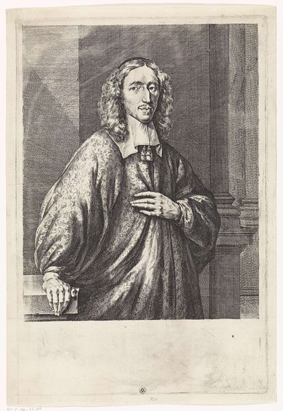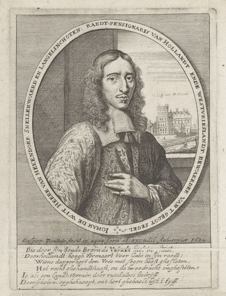 This print portrays Johan de Witt, and was made by an anonymous artist. The composition is divided into distinct zones, each contributing to a complex narrative. De Witt is centrally positioned, framed against a backdrop that hints at political turmoil, suggesting stability amidst chaos. The use of monochrome etching, with its stark contrasts, emphasizes the gravity of the subject. The artist employs symbolic objects: a medal held by de Witt and the ropes of a gallows behind allude to power, justice and potential betrayal. The lines of the etching are dense and precise in de Witt’s face, conveying his somber and reflective nature. The overall structure challenges the traditional portrait. Rather than presenting a straightforward depiction, the artist embeds De Witt within a network of signs and symbols that invite interpretation. It prompts us to consider the interplay between personal representation and political commentary, questioning fixed narratives.
