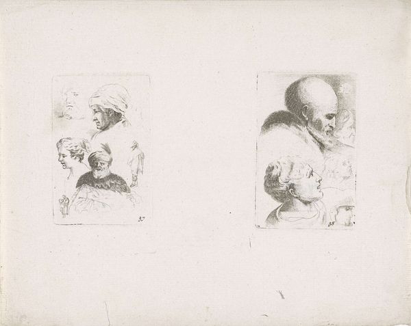 This tiny drawing at the Rijksmuseum, made by an anonymous artist, combines two distinct scenes within the same frame. On the left, we see a close-up of a child’s head, rendered with delicate lines that capture the soft, rounded features of youth. To the right, a farmer stands with his back to us, overseeing two swine in a loosely sketched landscape. The contrast in scale and subject matter immediately draws the eye, creating a visual tension. Each scene, isolated in its own right, offers a glimpse into different aspects of life. The fine lines and precise detail in the child's face contrast with the more gestural, almost casual depiction of the farmer and his pigs. The arrangement of these scenes within the frame invites us to consider their relationship. It's a study in contrasts, where detailed portraiture meets pastoral simplicity, prompting us to reflect on how different elements of life are brought together within the frame of human experience.