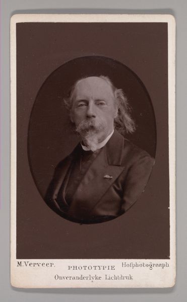 This albumen silver print of Samuel Palmer was made by John and Charles Watkins in 1871. The composition, anchored by a central figure seated in a plush chair, presents a study in tonal gradations. Notice how the sepia tones create a subtle interplay of light and shadow, which in turn softens the details and lends a timeless quality to the image. Palmer, holding a book, is captured in a moment of contemplative repose. The formal arrangement is structured by a classical approach to portraiture: the subject's gaze, the carefully chosen props, and the subdued palette all contribute to a carefully constructed representation. The photograph can be interpreted as a sign, encoding the cultural values associated with intellect, artistry, and the Victorian era's fascination with capturing individual likeness. The print creates meaning through its structure, and through the semiotic system of signs and cultural codes that informed its making and reception.