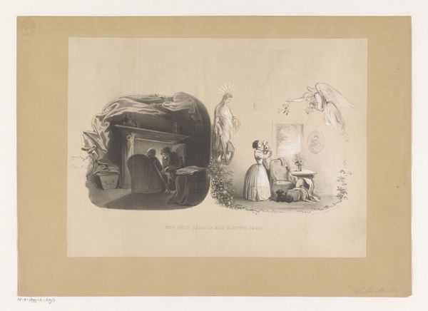 Curator: Ah, this print by François Grenier, titled "Vrouw gaat met manden gevogelte naar de markt" – "Woman Going to Market with Baskets of Poultry," roughly from 1819 to 1845, depicts a bustling, intimate rural scene. Editor: It’s lovely. The first thing that strikes me is the stillness contrasted with implied movement, everything feels somehow...contained, suspended, like a faded memory or the pause before action. Curator: Contained is a great word. You know, looking closely, it is an engraving – a really skillful one. Think of the labor that went into etching those fine lines onto a metal plate to achieve such delicate gradations of light and shadow. Each line carefully placed for mass reproduction! Editor: Exactly! You’ve got the tangible effort right there in the very fabric of the artwork. And the material—that paper stock they used for prints at that time; slightly rough, meant to be handled. It hints at circulation, mass culture, even commerce itself. A little paradoxical for such an intimate scene. Curator: But also so utterly Romantic, isn't it? The pastoral scene, idealized peasant life… Grenier presents such an affectionate, soft image. The weight of those baskets of fowl feels almost...light. Editor: I suppose. For me, the dogs really complete it. Like the entire village, the domestic and the working, are intertwined. Look at the details like the texture of the stone wall – it tells me about the skill required for this kind of print work, and that engraving process connects it to something more tangible and perhaps… truthful about labour. Curator: Right. A celebration of ordinary moments transformed through artistry into something eternal and beautiful. And ultimately for sale! Even so, to look at it, a bit wistful; maybe Grenier felt this tension himself, caught between a world being documented for the masses, yet always, already slipping away? Editor: Beautifully put. The engraving exists precisely to allow the original scene to be possessed and consumed, in print, by a bourgeois audience that romanticises rustic, manual labour, all removed from the literal marketplace the subject of the artwork is herself headed towards. It's more complicated than just wistful, wouldn’t you say? Curator: Always! Thank you; yes, exactly. It’s that dance between the ephemeral and the enduring, the hand-crafted and the mass-produced that keeps us coming back, doesn't it? Editor: Indeed. Makes you think differently about prints of genre scenes.