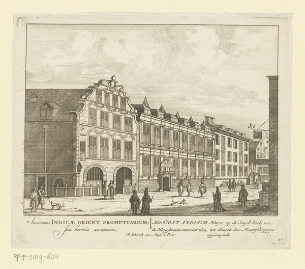 Curator: This etching by Louis Pierre Baltard, dating back to 1816, captures an exterior view of the Roman Theater of Orange. Editor: The monumentality is striking. The sheer volume of stone… it feels oppressive almost, doesn't it? And yet, meticulously rendered, right? Curator: Indeed. Baltard’s work demonstrates Neoclassical leanings with its almost photographic detail combined with idealized form, but focusing on the process, etching allowed for reproducibility. Prints like these circulated widely, influencing architectural trends and aesthetic preferences. The labor involved in creating the printing plates would have been significant. Editor: Absolutely, and that accessibility is key to understanding its impact. But it’s not just about aesthetics, it's also about power. Ancient Roman architecture was being used to visually connect contemporary regimes with the perceived glory of that ancient civilisation. You see the Roman revival throughout European cities at the time, expressing political ideas through civic structures. Curator: Certainly, the availability and affordability of prints allowed a far broader public than previously, to participate in civic understanding and discourse through architectural form. Editor: Also notice how he situates the architecture amidst a contemporary cityscape. Small, human scale buildings contrast with the vastness of the theater, highlighting a conscious layering of historical periods. Curator: Yes, which makes it not merely a document, but a carefully constructed artifact intended to both inform and evoke certain ideals. Editor: A potent piece then, about materials, access, history, and how those factors contribute to civic narratives. Curator: A blend of technical skill and ideology, indeed. And the distribution networks facilitated the widespread influence of these ideas, reflecting socio-political currents far beyond a mere artistic style.