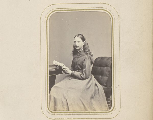 Curator: Before us we have a portrait by François Joseph Delintraz, titled "Portret van een onbekende jonge vrouw," placing its creation somewhere between 1859 and 1868. It’s rendered through the photographic medium. What is your initial reaction to it? Editor: There's a palpable melancholy in this image, isn't there? Her gaze is direct, but there's a weight to it. A sort of Victorian seriousness that the sepia tone amplifies. Curator: That seriousness, I think, stems from the sitter's position in society at that moment in time. Consider the societal expectations placed on women during the mid-19th century. Photography was becoming more accessible, yet the performative nature of portraiture would have underscored prevailing ideologies about femininity. The sitter's expression becomes a site of complex negotiations. Editor: You're right, and beyond just the emotional register of her face, notice how all the accessories work together symbolically. Her hands, carefully placed and posed, are a window into Victorian social structures where etiquette was considered extremely important, also look at the small pearl earring she has. Curator: Indeed. What resonates with me is how the anonymity amplifies the possibilities of analysis. It becomes more about universal experiences of womanhood within certain historical constraints. We are left with her presence. Her silent declaration that ‘I was here’ captured in the photographic lens. Editor: A haunting presence, almost spectral given the soft focus around the edges. But that soft focus is perhaps more technical than metaphorical. Curator: Or perhaps it is both! Photography in that period also explores how people wanted to see themselves presented. This interplay between material constraint and artist’s choice underscores a potent point, because Delintraz's piece lets us confront prevailing sociohistorical norms about identity representation and how people pushed the boundaries. Editor: Seeing these symbols through her, then allows the viewer to transcend mere historical record; her emotions are potent today. Curator: It provides us an avenue to understand both past constraints and persistent resonances related to gendered identity today. The past really informs how to navigate present norms. Editor: Very well said. A final resonating glimpse into an historical individual.