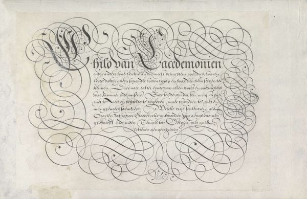 This calligraphic writing sample, made by Lieven Willemsz Coppenol, showcases the flourish and decorative potential of letters. The elaborate swirls that frame and intertwine with the text draw our attention to the letter 'L'. Its extravagant form carries a unique visual weight. This treatment of the 'L' evokes the twisting, sinuous forms of Laocoön, forever struggling against the serpents. Just as Laocoön's agony speaks to a universal human condition, the contorted 'L' mirrors the intensity and passion embedded in the text. The gesture of struggle and complexity is not confined to classical sculpture; it resurfaces in the baroque ornamentation of the letter. Such visual echoes reveal how images and symbols migrate through time, each era reinterpreting and imbuing them with new emotional resonance. This cyclical progression reflects our collective memory, shaping and reshaping the visual language we use to express ourselves, from the grand scale of sculpture to the intimate art of calligraphy.