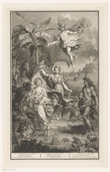 Curator: Good afternoon, everyone. We’re looking at Andreas Flint’s engraving, "Moses with the Burning Bush," created in 1792. It's currently part of the collection at the SMK, the National Gallery of Denmark. Editor: The sheer drama jumps out immediately. There's such dynamism captured in monochrome, from Moses' recoiling figure to the fiery vision looming above. The scale feels epic even within this relatively small print, promising world-altering consequences. Curator: It’s fascinating how Flint encapsulates a pivotal moment. We have Moses at the base of the image, struck by the theophany of God represented within the burning bush along with two other, somewhat ambiguous, ethereal figures. It emphasizes this idea of revelation and divine instruction through an image. Editor: And the snake near Moses… It suggests a potent undercurrent of warning and possibly the power struggle about to take place between faith and Pharaoh’s tyranny. The inclusion positions Moses right at the cusp, caught between old dangers and new divine empowerment, shaped by this historical and sociopolitical tension. Curator: Indeed, the symbols build narrative momentum, reflecting the potent cultural memory linked to this story of deliverance. It taps into humanity's collective fascination with stories of theophany, theophany often represented as divine flames speaking with authority, but here you have divine company—who are these figures with God, who have these associations? What psychological weight are they there to add? Editor: And the way Flint deploys a Baroque sensibility, heightening the contrast and imbuing it with grandiosity, elevates the event from a personal experience to a moment with significant public meaning. You can see the impact the artwork wants to have as the story's influence began reshaping socio-political norms in the broader context of the world. Curator: Flint creates such a fascinating visual that connects the cultural importance to personal experience. Each time you view the image, one could be influenced by their prior connections and place in life to the figure's placement in relation to one another, and with God. The visual layering is a wonderful touchstone for those considering the weight and presence of culture and belief within our personal understandings. Editor: Yes, exactly, it's how an artistic image, mediated through printing techniques, amplifies not only a religious moment but reshapes collective memory in early public experience with imagery of faith and its social impact. Curator: Precisely, which leaves one considering both personal and communal memory shaping faith and belief and, in return, reshaping visual culture in dialogue. Editor: Very insightful!
