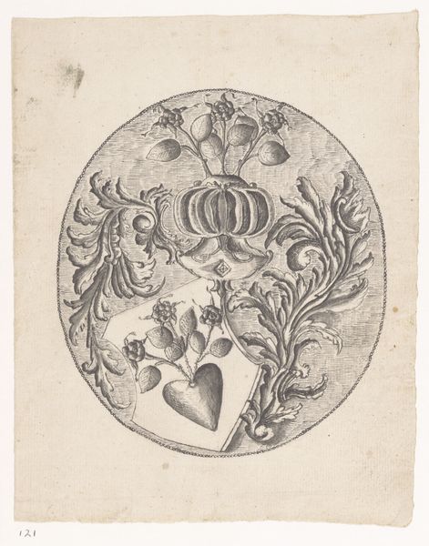 This small, anonymous print from an unknown time shows a heart pierced by a rose, an emblem brimming with symbolism. Consider the cultural associations here. Roses signify love, but thorns suggest pain. The piercing of the heart speaks to the wounds of love, a common theme in art and literature across centuries and cultures. The floating hands add an element of surrealism, perhaps representing the active role of fate or desire in matters of the heart. Without knowing the specific context, it's challenging to pinpoint the exact cultural references. Was this a personal token, a page from a book of emblems, or part of a larger allegorical work? Looking into the history of emblem books and popular iconography of the period might reveal more. How was love understood and portrayed in the society that produced this image? Was it linked to religious ideas, social expectations, or courtly rituals? By exploring these questions, we move beyond the surface of the image and uncover its potential meanings, recognizing that art is always shaped by the social and institutional forces of its time.